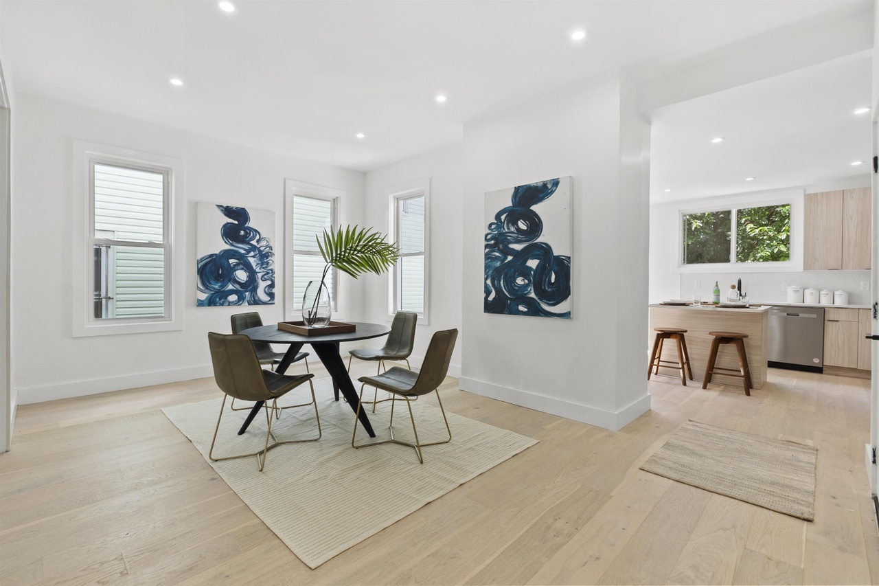Turnkey Jersey City single family! Maximum curb appeal with modern farmhouse exterior, open front porch, and vertical board and batten siding. Enter the parlor level to find a dramatic original restore